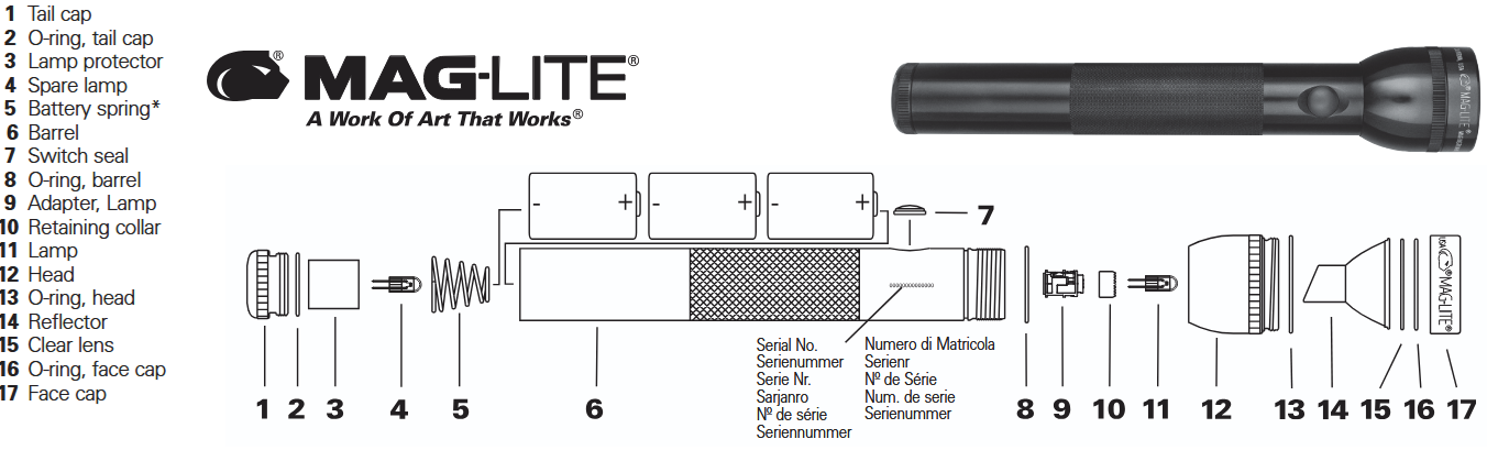 BLACK Maglite Heavy-Duty 3-Cell D Flashlight COMBO