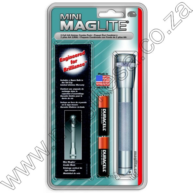 The AA mini Maglite is powered by 2 AA alkaline batteries (supplied with the torch). Limited life-time warranty- spares are available in South Africa.